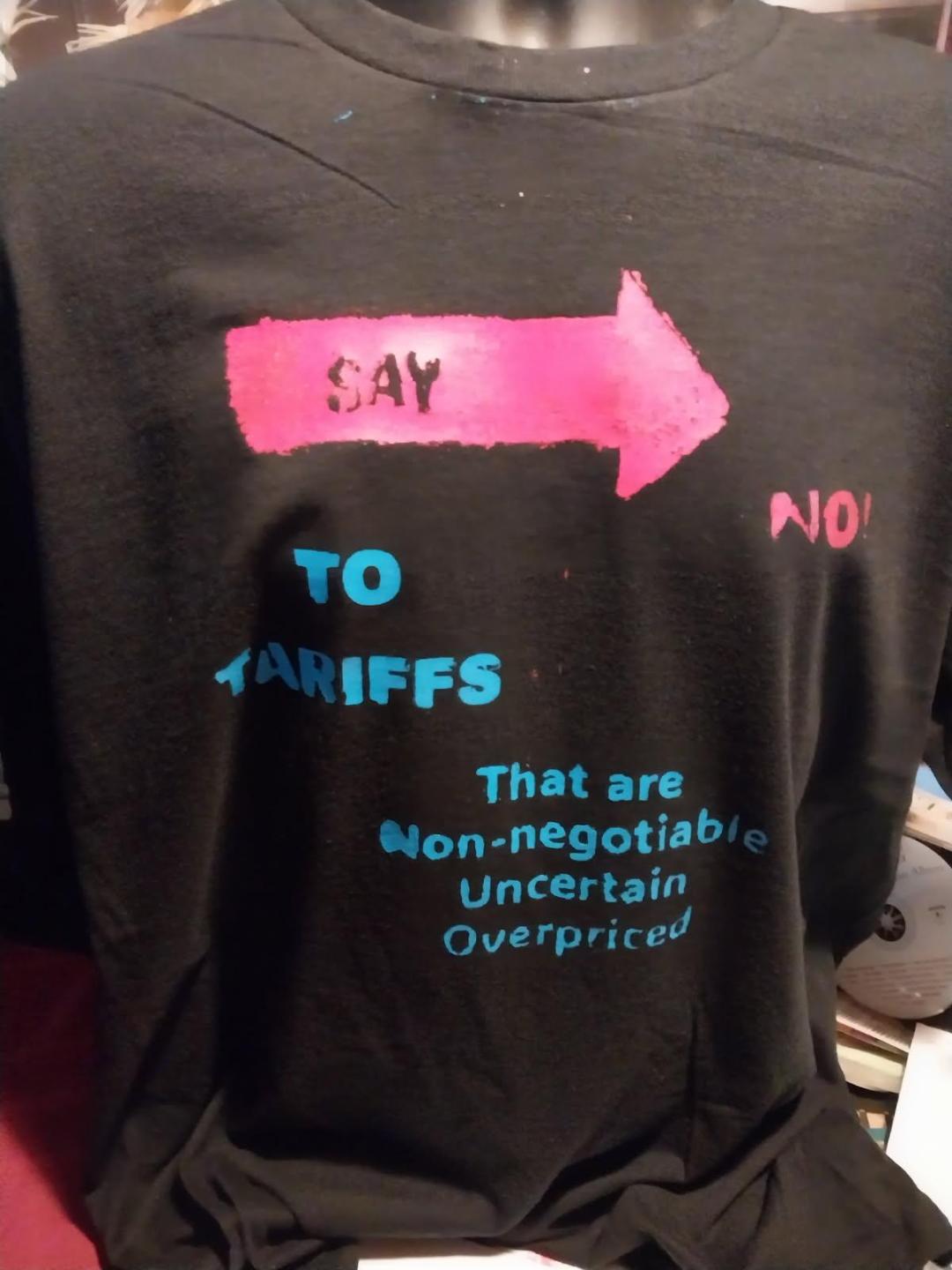 The "SAY" is custom made it represents our hesitation of speaking on Tariffs. We know they are necessary but we don't want them to be non-negotiable, uncertain, or overpriced